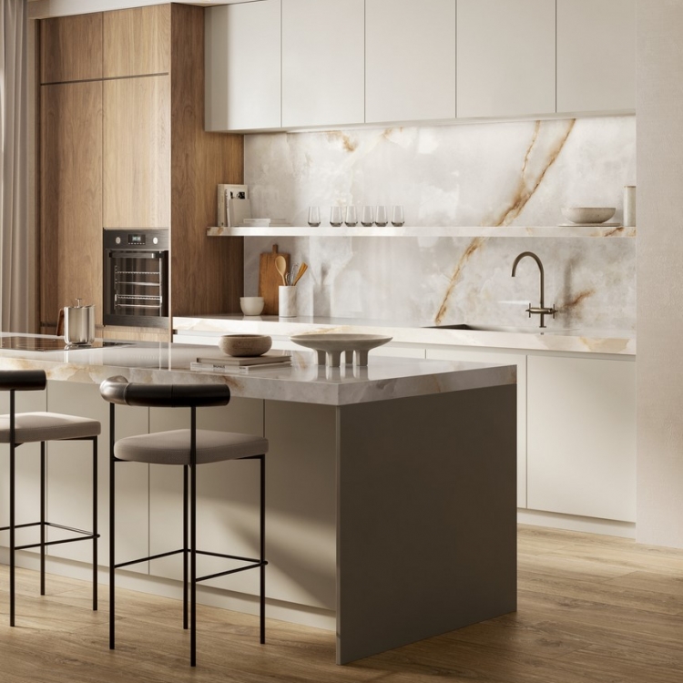 Zaradi možnosti kombiniranja materialov ali ustvarjanja elegantnega enotnega videza nove različice oniksa vnašajo slog, prestiž in sodobno razkošje v stanovanjske in poslovne prostore.