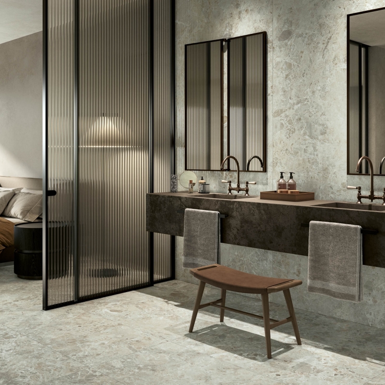 Široka barvna paleta, z odtenki toplih in hladnih tonov, poudarja avtentičnost in čutno privlačnost materiala. Na voljo je v površinah Levigato in Touch, ki združujeta mehak otip z visokimi tehničnimi lastnostmi (protizdrsnost R11 A+B+C), s čimer zagotavljata varnost in enostavno čiščenje v vseh okoljih.
